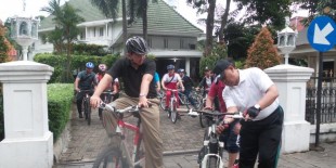 Gubernur DKI Jakarta Basuki Tjahaja Purnama didampingi Sekretaris Daerah Saefullah saat akan hendak memulai kegiatan bersepeda dari rumah dinasnya di Jalan Taman Suropati, Menteng menuju Bundaran HI, Minggu (30/11/2014)